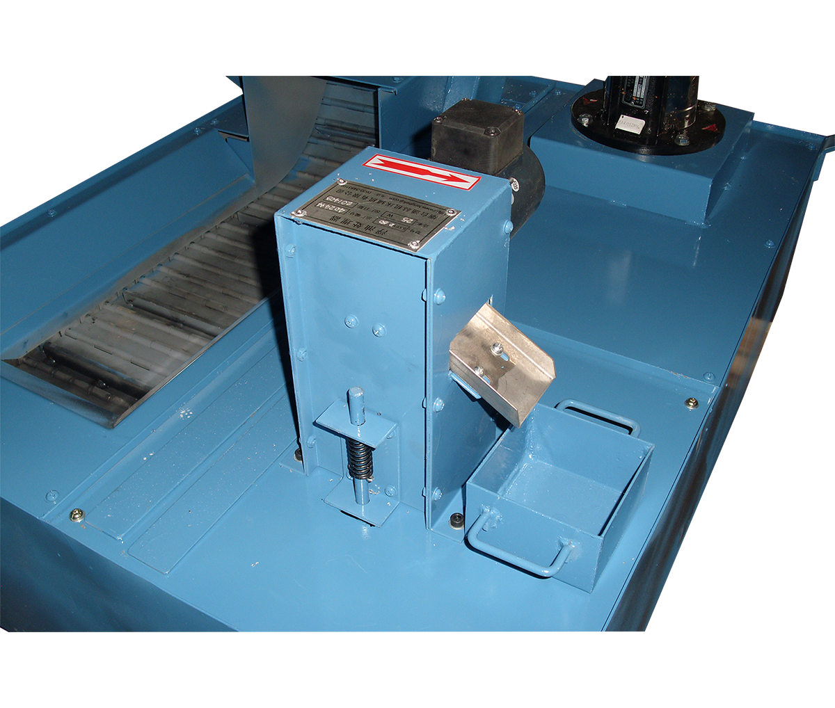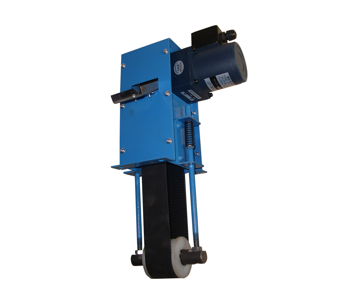 由減速電機、粘油帶、刮油板、殼體、集油盒等部分組成,減速機驅動粘油帶主動輪作回轉運動。根據水基切削液與浮油物理親和性能上的差別,利用侵入油液混合區的粘油帶將浮油粘起,再由刮油板刮入集油盒內。該系列浮油處理器分為: