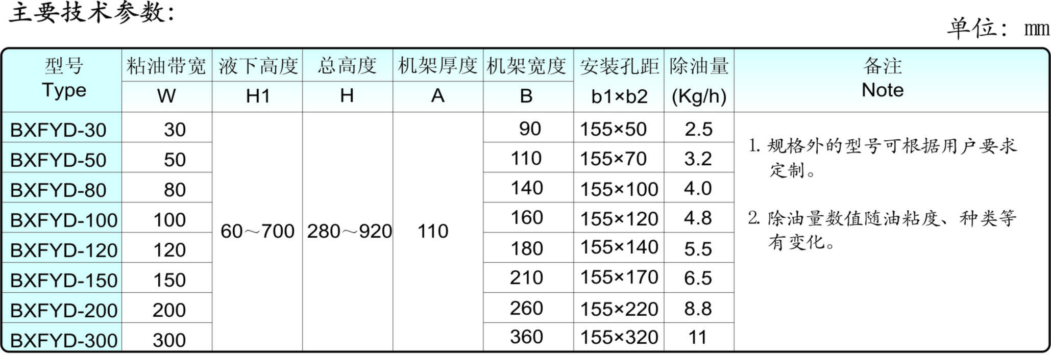 3.用戶可根據水箱的尺寸、浮油量來選擇機型。