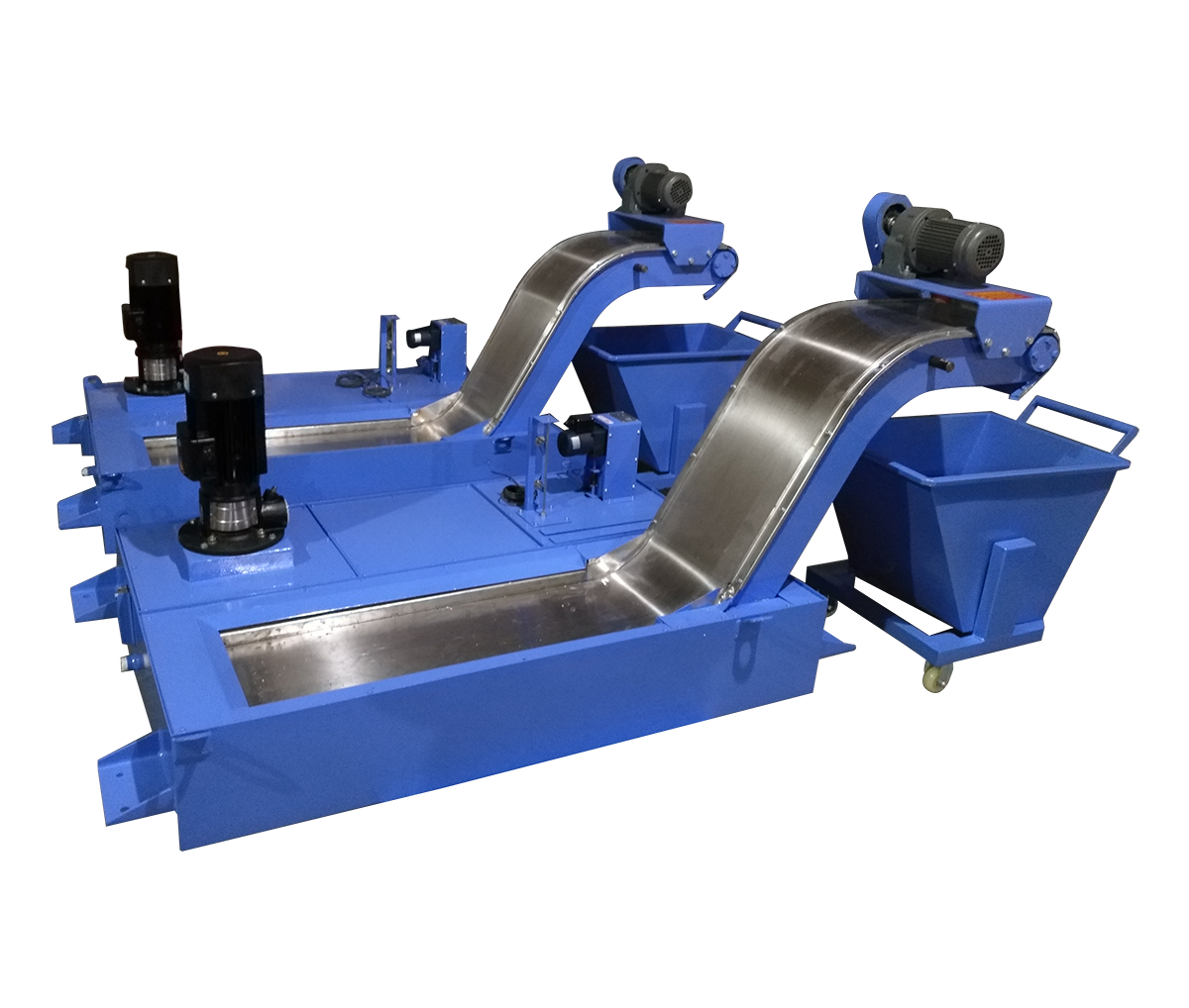 BXCP系列磁性排屑裝置是由減速機、殼體、傳動鏈條、磁性材料、不銹鋼輸送面板等幾部分組成。該裝置利用永磁材料所產生的強磁場的磁力,將粉狀、顆粒狀及長度小于100mm的鐵屑,或將油、乳化液中的碎屑分離,吸附在排屑機的工作磁板上,輸送至指定的排屑地點或集屑箱中的機床輔助設備。